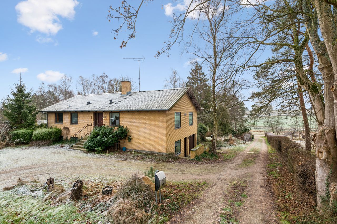 I har fundet et hus, hvor I kan slå rødder - et ægte hjem. Her er der plads til familielivet og til de store drømme, som kan udfolde sig på den imponerende grund. Når I går rundt med udsigt til skov og åbne vidder, vil I have følelsen af at være flyttet langt ud på landet, men hverdagen venter faktisk lige om hjørnet. Der er få hundrede meter til bussen, og der er kort vej til de to nabobyer, som står til rådighed med alt fra skoler og indkøb til foreningsliv, shopping og offentlig transport.